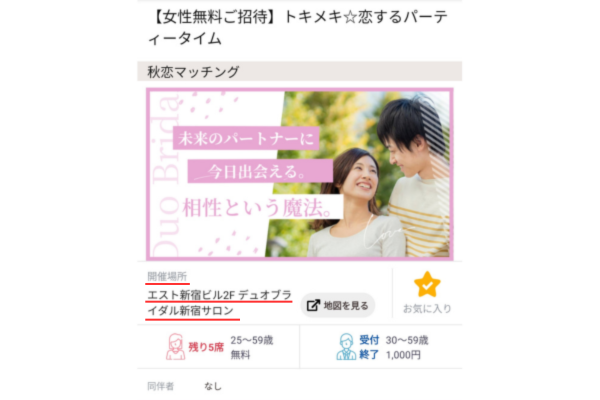 開催場所は「エスト新宿ビル2F デュオブライダル新宿サロン」