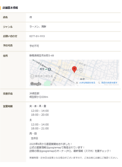 念願叶い、グンマ―桐生市の麺者 侍で。