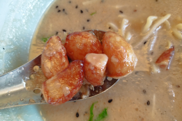 店主さんに、穴あきレンゲでラーメンが残っていないかを確認してもらってからの、