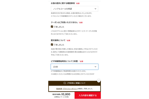 12時に受付をしてからの、ピザ作りの予約を13時にしたものだからね。