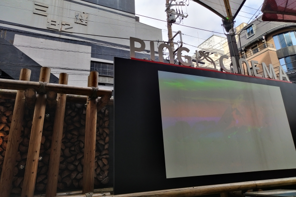 ガーデンには、足湯や大きなプロジェクターが。