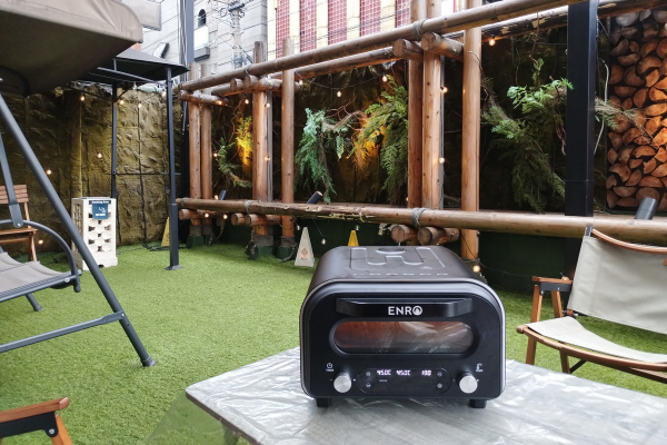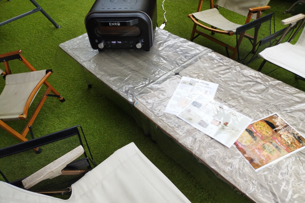 グランピング店でのピザ作りは、外のガーデンで行う。