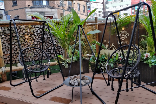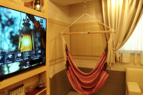 随所にハンモックがあるグランピング店。