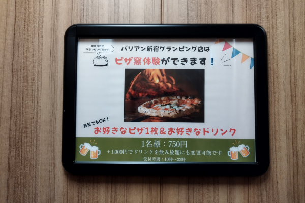 ピザ食べ放題ではなくて、普通にピザ1枚&ドリンクの注文ができる模様。