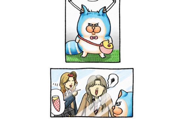 メロと女子高生のプリクラオマージュ。