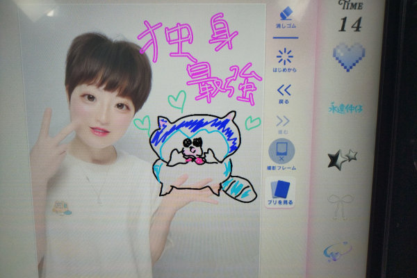1カ所のブースで撮影、落書き、印刷まで出来る、ありがたい機械。